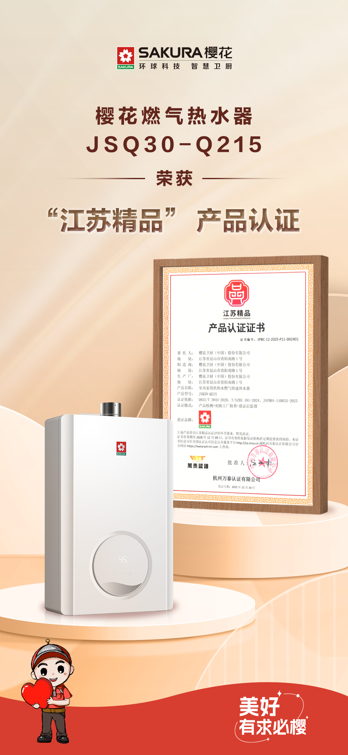【品牌资讯】以硬核实力诠释高质量发展丨樱花燃气热水器 JSQ30-Q215 荣获“江苏精品”产品认证