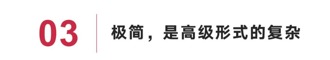 极简主义设计并非一味追求设计形式的简化,而是追求设计形式和功能的平衡。即在实现设计功能的前提下,去除非本质的、不必要的装饰,使用干净流畅的外形,使设计呈现出优雅感和纯粹感。空间留白是极简主义常用手法,通过留白来强调设计的本质,创造强烈对比感,制造出想象的空间。